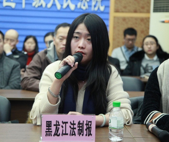 此次新闻发布会,由林区中院教育科副科长李海涛主持,干部科干事慕欢、刘凤佳共同回答媒体记者提问。