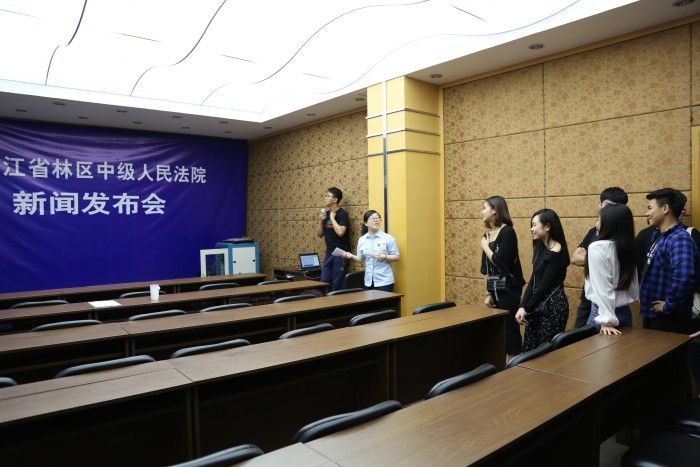 活动期间,留学生们兴致勃勃的参观了林区中院诉讼服务中心、12368诉讼服务平台,随后到办公区参观了执行指挥中心、审委会会议室、档案室、文化长廊等基础设施建设,并在科技法庭零距离感受了林区中院数字法院、智慧法院建设成果。
