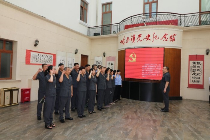 哈尔滨党史纪念馆以1923年至1958年中国共产党在哈尔滨的历史发展为主线,通过大量的历史图片、文物、雕塑和油画等艺术作品,生动地再现了中国共产党在民主革命时期和社会主义建设时期,带领哈尔滨人民浴血奋战、团结奋斗、不断进取的历史画卷。大家在讲解员的引导下,依次参观了“中共哈尔滨组建立及活动”、“艰苦卓绝的抗日斗争”、“建立民主政权支援解放战争”及“巩固政权全面开展经济建设”四个展区,共同追溯哈尔滨的“红色之路”,深入了解中共哈尔滨党组织带领哈尔滨人民争取民族独立、人民解放的艰辛道路和改革开放、开拓创新的光辉历程,深切感悟到中国共产党的伟大初心和历史使命。