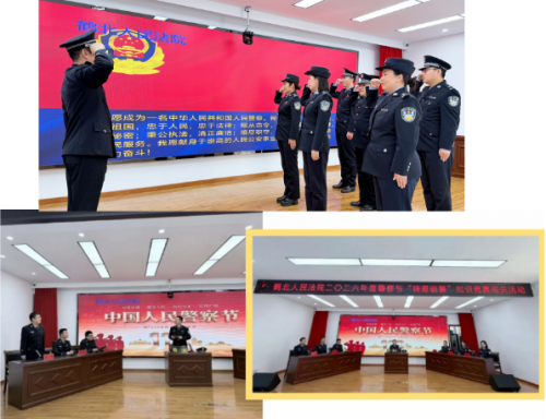 在第六个中国人民警察节来临之际,林区两级法院组织开展系列主题活动。从重温入警誓词到实战化比武练兵,从红色主题参观到《中国警察》观影,全景展现了人民法院司法警察忠诚铸魂的政治本色、砺剑强能的专业素能,生动诠释了新时代司法警察捍卫司法权威、守护公平正义的坚定信念与过硬担当。